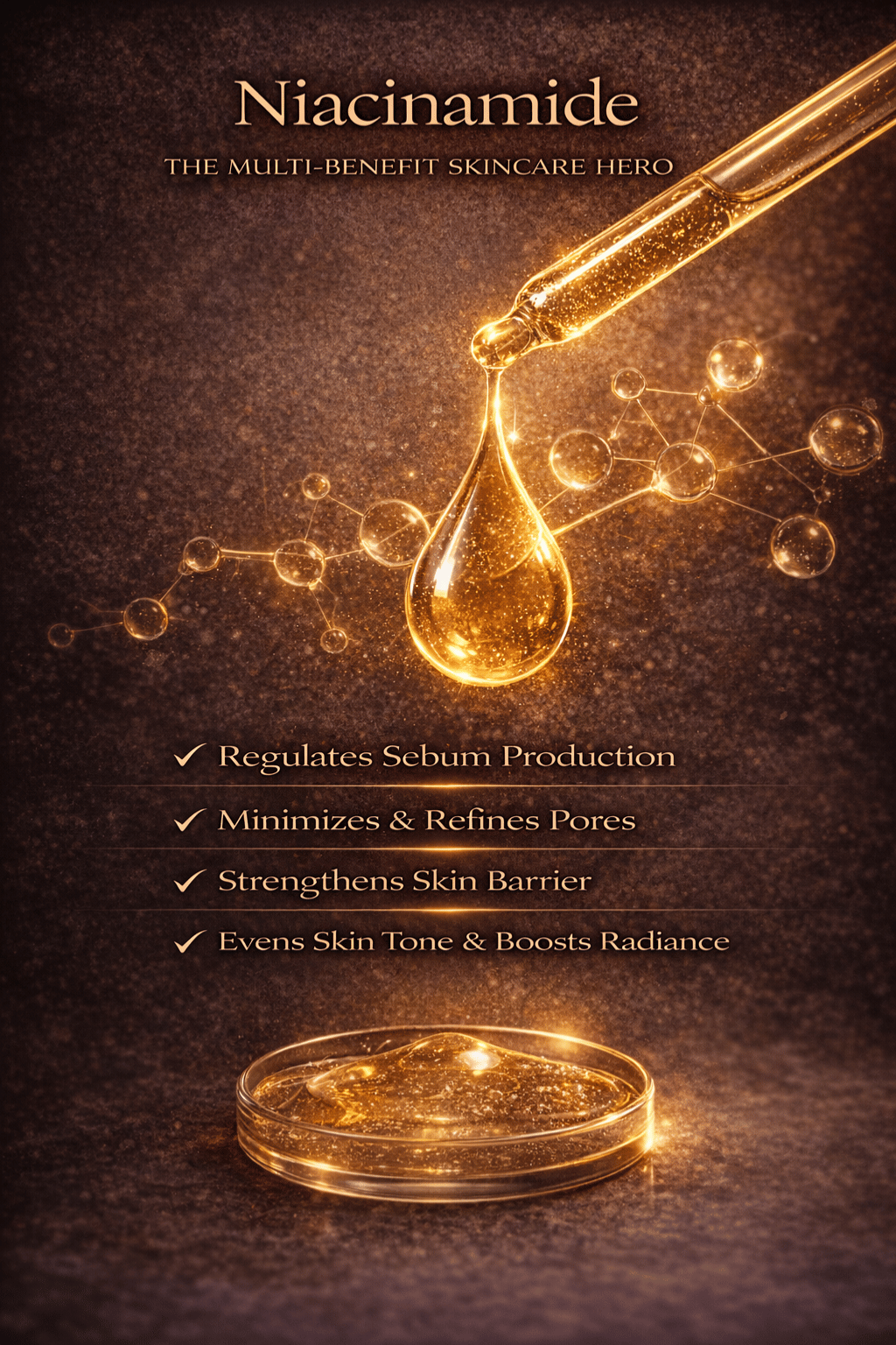 🌟 Niacinamide – Helps reduce excess oil, refine pores, even out tone and support stronger barrier function.
