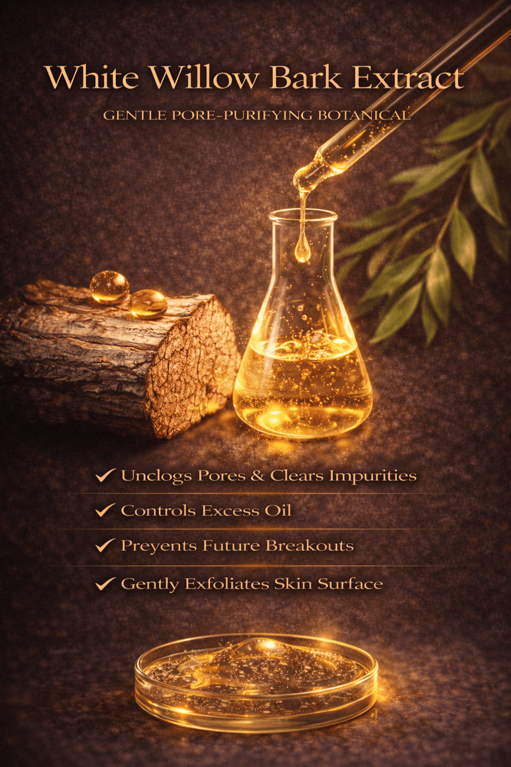 🍃 White Willow Bark Extract – Natural source of salicylates; gently encourages exfoliation and clearer pores.