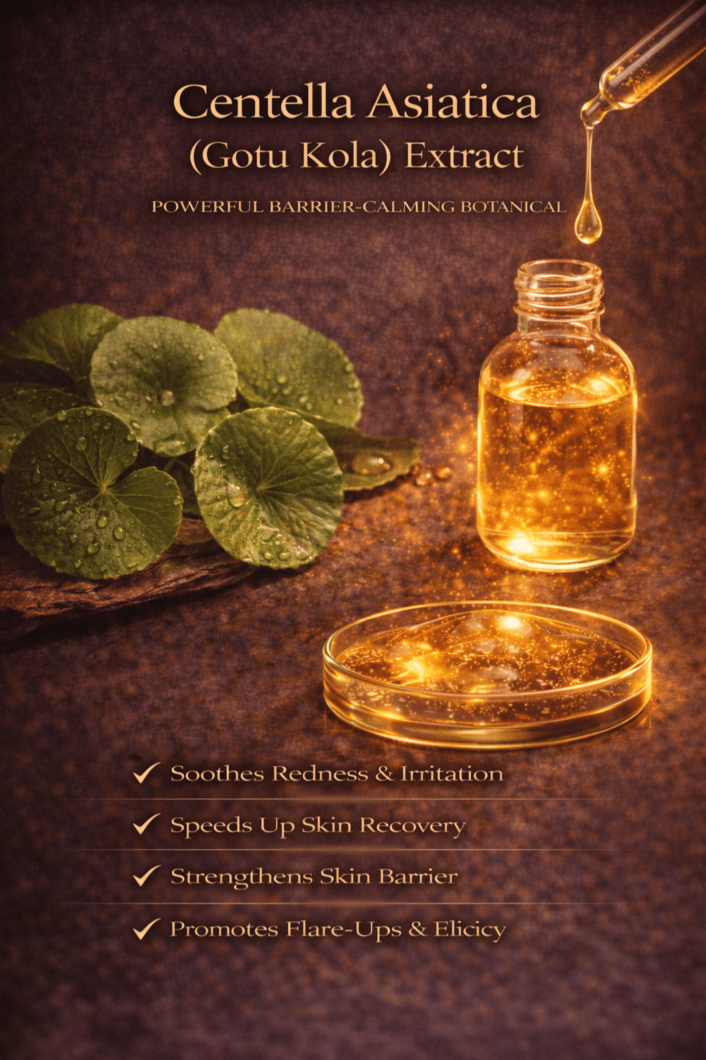 🌱 Centella Asiatica (Gotu Kola) Extract – Known to support skin repair, soothe irritation and improve resilience.