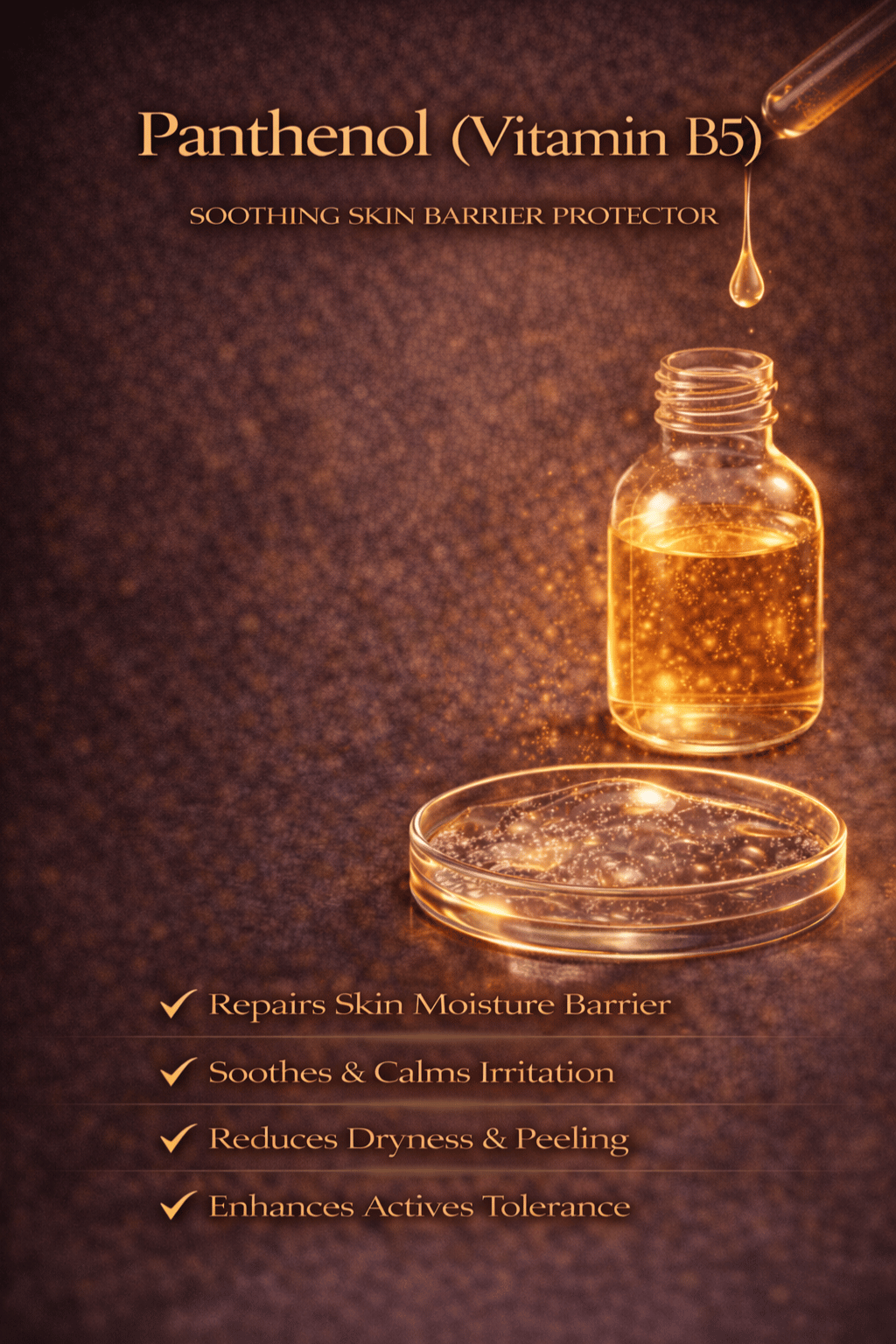 🩹 Panthenol (Vitamin B5) – Known to soothe, repair and strengthen the skin barrier while reducing dryness.
