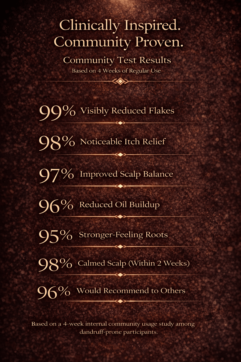 Most users notice reduced itch and improved scalp comfort within 1–2 weeks. Visible reduction in flakes typically appears within 3–4 weeks of consistent use. For deeper scalp balance and root strengthening, continued use for 4–8 weeks is recommended.