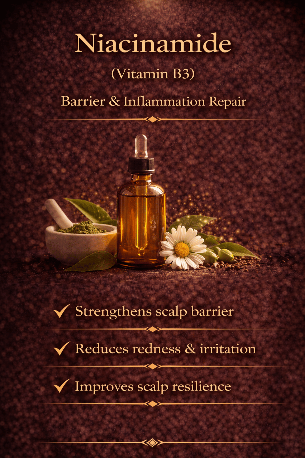 🌸 Herbal & Botanical Extracts 🌼 White Tea Extract – Rich in antioxidants; protects scalp from oxidative stress 🌼 Chamomile Extract – Soothes irritation and reduces scalp sensitivity 🌼 Calendula Extract – Calms inflammation and supports scalp healing 🍃 Green Tea Extract – Detoxifies scalp and controls excess oil 🌿 Witch Hazel Extract – Tightens pores and reduces dandruff-causing buildup 🍚 Rice Water Extract – Strengthens roots and improves scalp resilience 🎋 Bamboo Extract – Supports stronger, thicker-looking hair 🌾 Oat Kernel Extract – Relieves itchiness and dryness 🌱 Aloe Vera Extract – Deep hydration and soothing comfort 🌺 Hibiscus Extract – Nourishes roots and promotes healthier growth 🌿 Rosemary Extract – Stimulates scalp circulation 🍋 Lemon Extract – Refreshes scalp and reduces flake formation 🍇 Grapeseed Extract – Antioxidant protection and scalp repair 🌰 Fenugreek Extract – Strengthens follicles and reduces hair fall 🛢️ Luxury Botanical Oils 🌿 Neem Oil – Powerful anti-dandruff purification 🌺 Hibiscus Oil – Deep nourishment and scalp conditioning 🌰 Argan Oil – Restores moisture and strengthens roots 🌼 Jojoba Oil – Balances scalp oil production 💎 Marula Oil – Rich nourishment and antioxidant repair 🧬 Scalp-Repair & Strengthening Actives 🧬 Niacinamide (Vitamin B3) – Improves scalp barrier & circulation 💧 Panthenol (Pro-Vitamin B5) – Deep hydration and hair strength 🧬 Biotin – Supports healthy hair growth ⚖️ Zinc PCA – Controls oil and dandruff-causing microbes 🌿 Salicylic Acid (Willow Bark Derived) – Gently exfoliates flakes ❄️ Purifying & Cooling Agents 🌿 Tea Tree Essential Oil – Antimicrobial scalp purification 🍃 Peppermint Essential Oil – Refreshing, cooling comfort ❄️ Menthol (Botanical Origin) – Instant soothing & scalp freshness